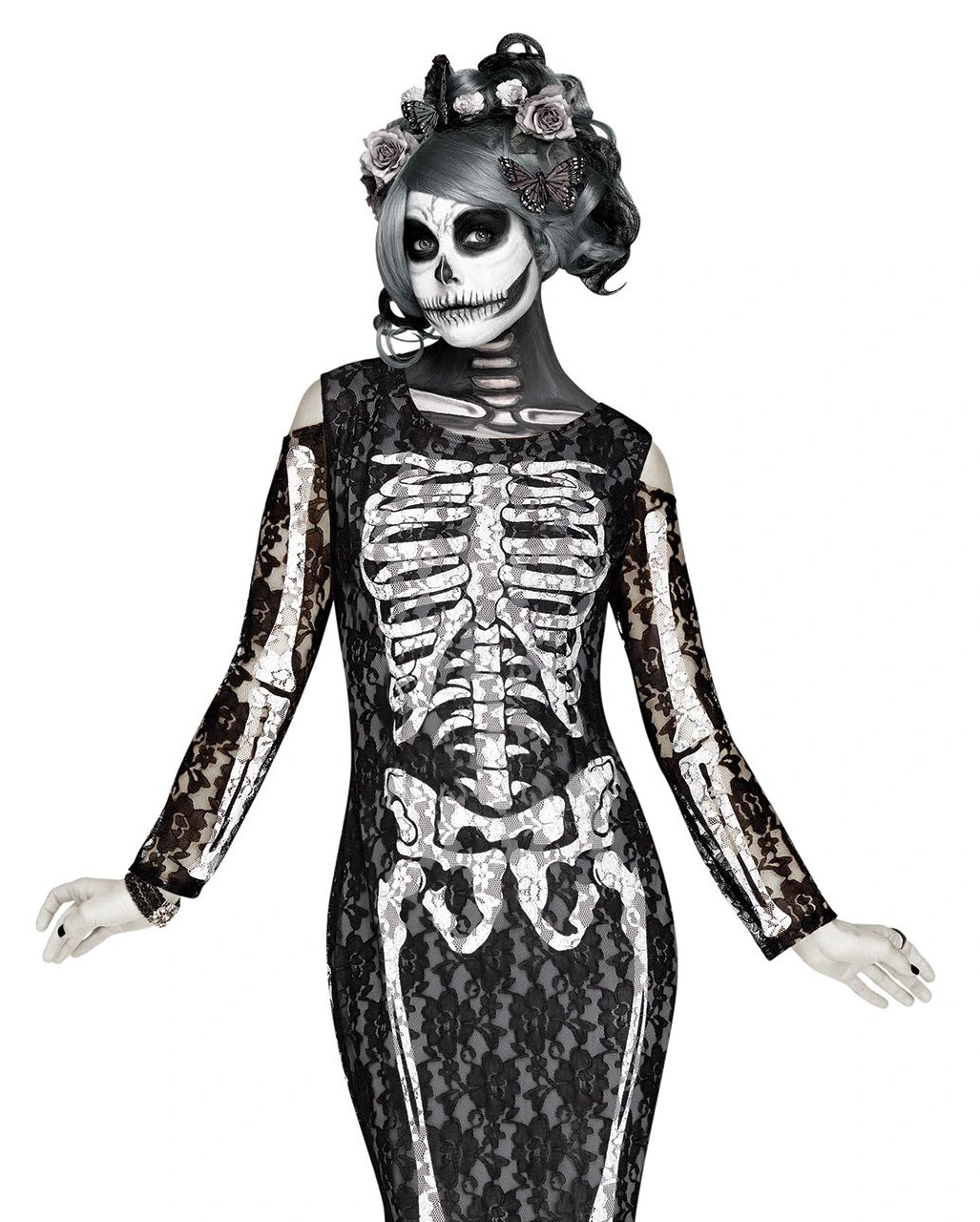 Lieferumfang: 1 x Elegantes Spitzen Skelett Kostüm