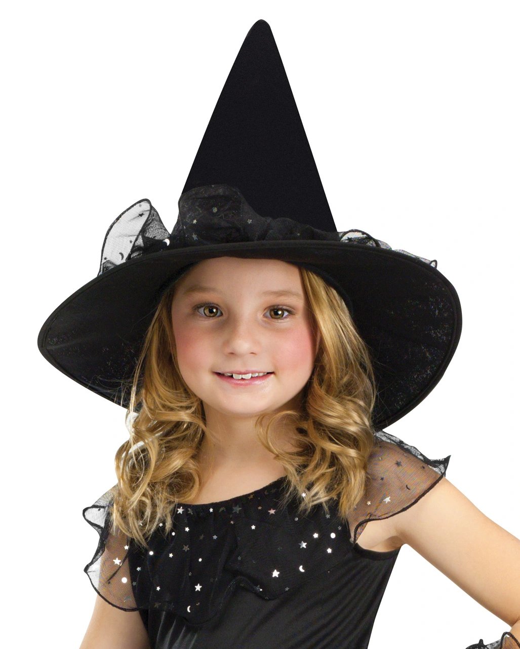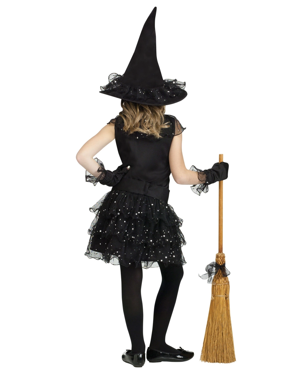 Verkleide dich jetzt zu Halloween und Fasching als süße Märchenhexe im Glitzerlook. Das schwarze Glitter Hexe Mädchenkostüm ist fantastisches Hexenkostüm mit vielen kleinen silbernen Sternen als Hingucker. Bei wolkenloser Nacht lässt der Mond diese auf deinem Hexenkostüm erstrahlen. Wir sind uns sicher, dass es für deinen Auftritt als Glitzerhexe, beim Sammeln von Süßigkeiten viele “Trick or Treat” Bonbons gibt.