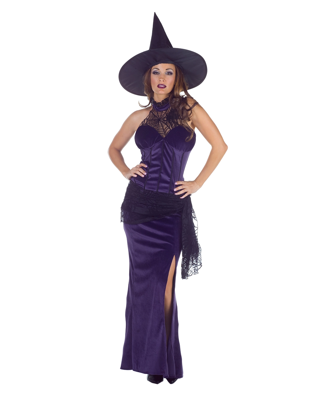 Das dreiteilige Hexen Kostüm besteht aus dem fabelhaften knöchellangen Kleid aus Samt, dem geschmackvollen Hexenhut mit lila Samt Band und dem Tuch in Spinnen Optik. Zu deinem neuen Hexenkostüm haben wir den passenden fliegenden Untersatz – den Hexenbesen mit Bambusstil!