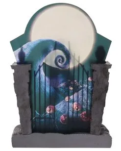Die Jack & Sally am Tor Figur ist ein zauberhaftes Geschenk für Fans düsterer Romantik und ein Must-have “The Nightmare before Christmas” Fans. Jack und Sally schauen sich vor dem Tor zu Halloween Town verliebt in die Augen, während im Hintergrund der Mond auf das Kürbisfeld scheint. Die leuchtende Deko Skulptur schlägt nicht nur Fans des berühmten Kinoabenteuers in den Bann. Die Liebe der beiden ist schließlich grenzenlos.