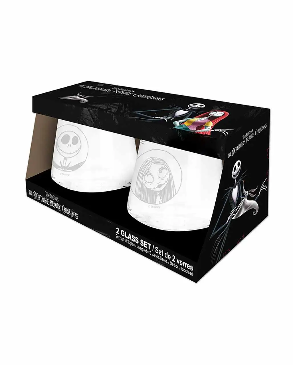 Das Nightmare Before Christmas Jack & Sally Glas Set zeigt Motive aus dieser mega genialen Geschichte. Mit dem Jack & Sally Glas Set sorgst du für Begeisterung bei Fans des Filmhits. Der Jack Skellington Merchandise Artikel sind in einer passenden Box verpackt. Darin befindet sich ein Trinkglas mit Jack Skellington und eines mit Sally als Motiv. Jedes Glas besitzt ein Fassungsvermögen von 300 ml. Weitere Fanartikel aus Tim Burton Filmen wie den Jack Skellington Folienballon findet ihr hier im Shop.