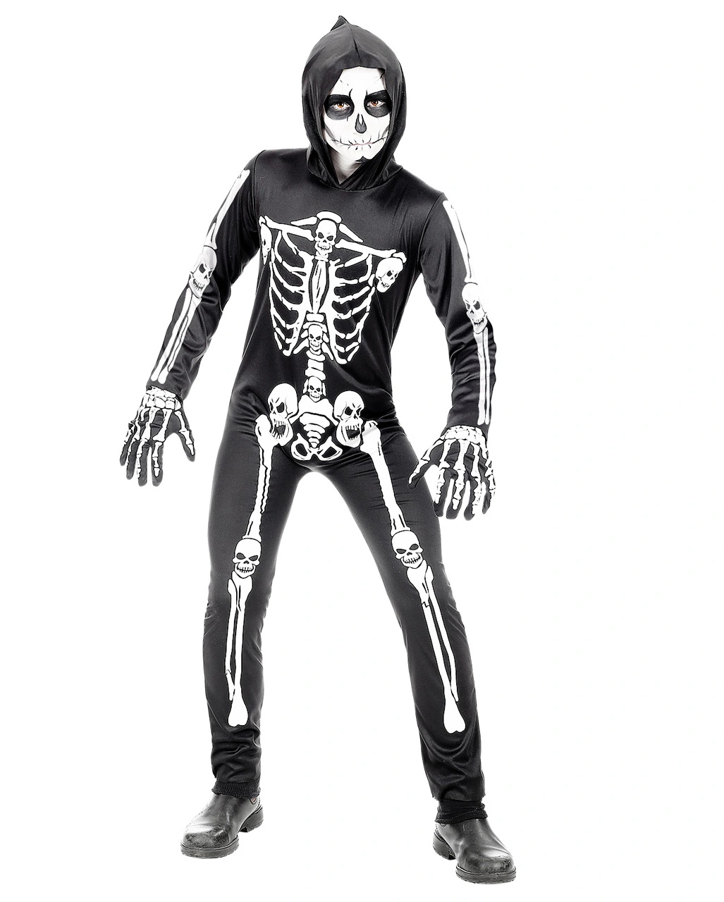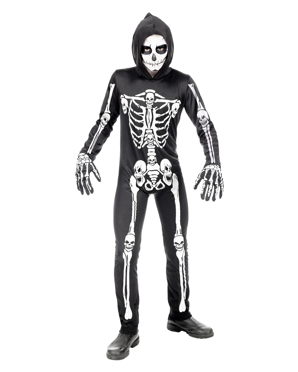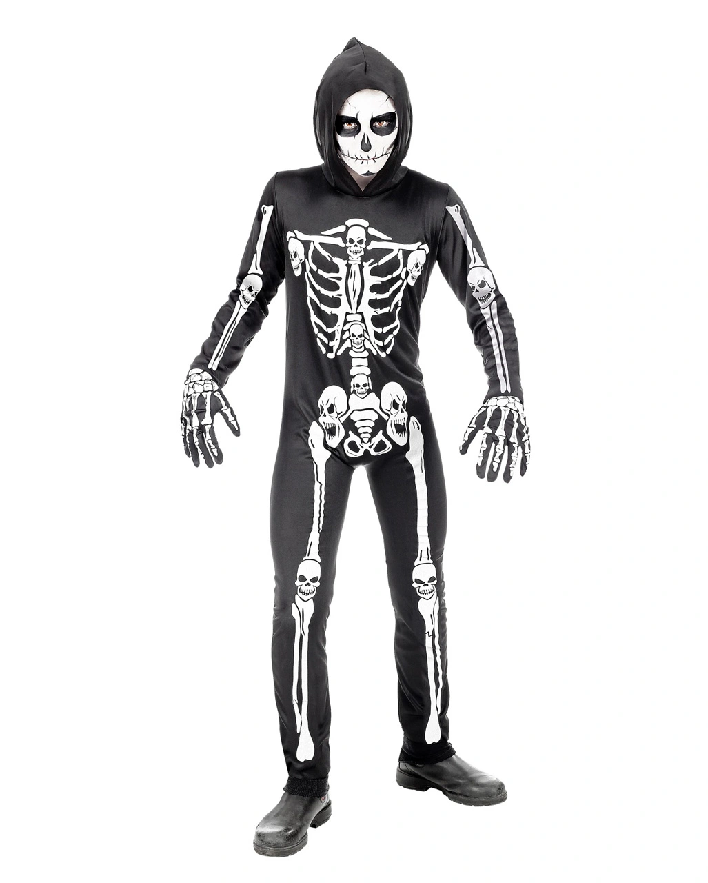 - Preiswerter Skelett Overall mit Kapuze