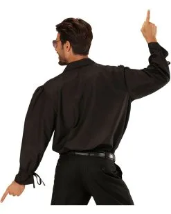 Bestell dir jetzt unser schwarzes Rüschenhemd und kleide dich damit vielfältig für Mottopartys und Kostümbälle. Das schwarze Hemd ist langärmlig und ist auf der Vorderseite zum knöpfen. An den Ärmeln sind die Bündchen durch Schnüre verstellbar.