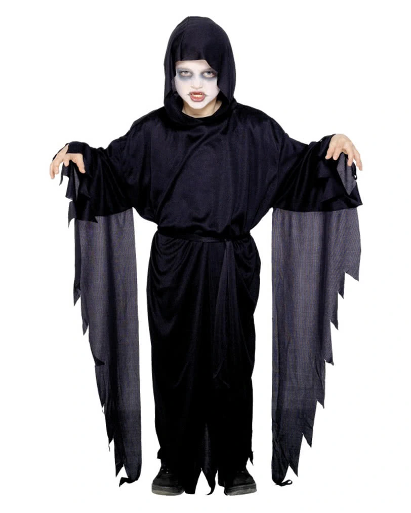 Der Sensenmann ist eine sehr beliebte Halloween Verkleidung welche dich im Hand umdrehen zu einer gefürchteten Gruselgestalt macht. Mit der praktischen schwarzen Kutte mit Kapuze ist dein Kind schnell angezogen und und kann als Tod verkleidet seine Süßigkeiten einsammeln.